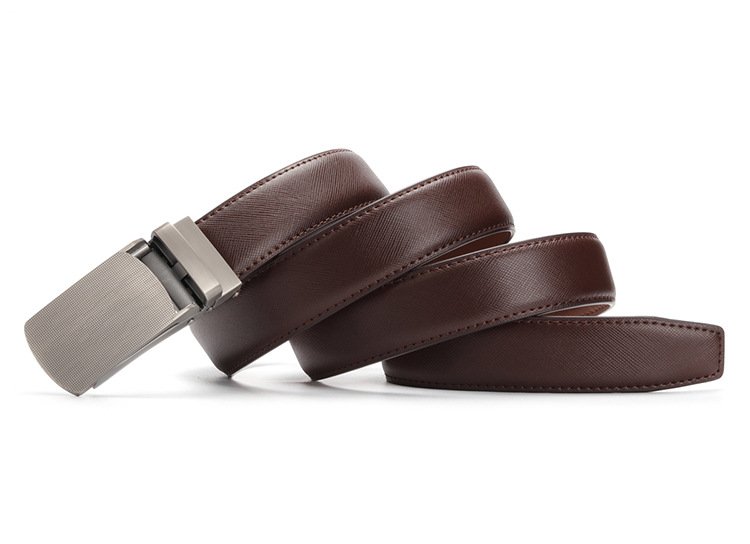 A classic custom leather belt with automatic buckle, suitable for business and formal wear. This style is popular among retail brands due to its premium appearance and consistent demand.