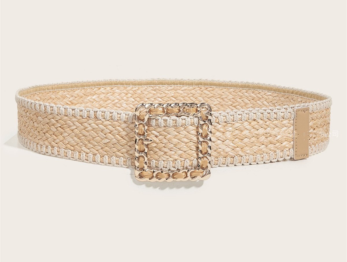 New Bohemian Style Women PP Straw Belt With Square Buckle