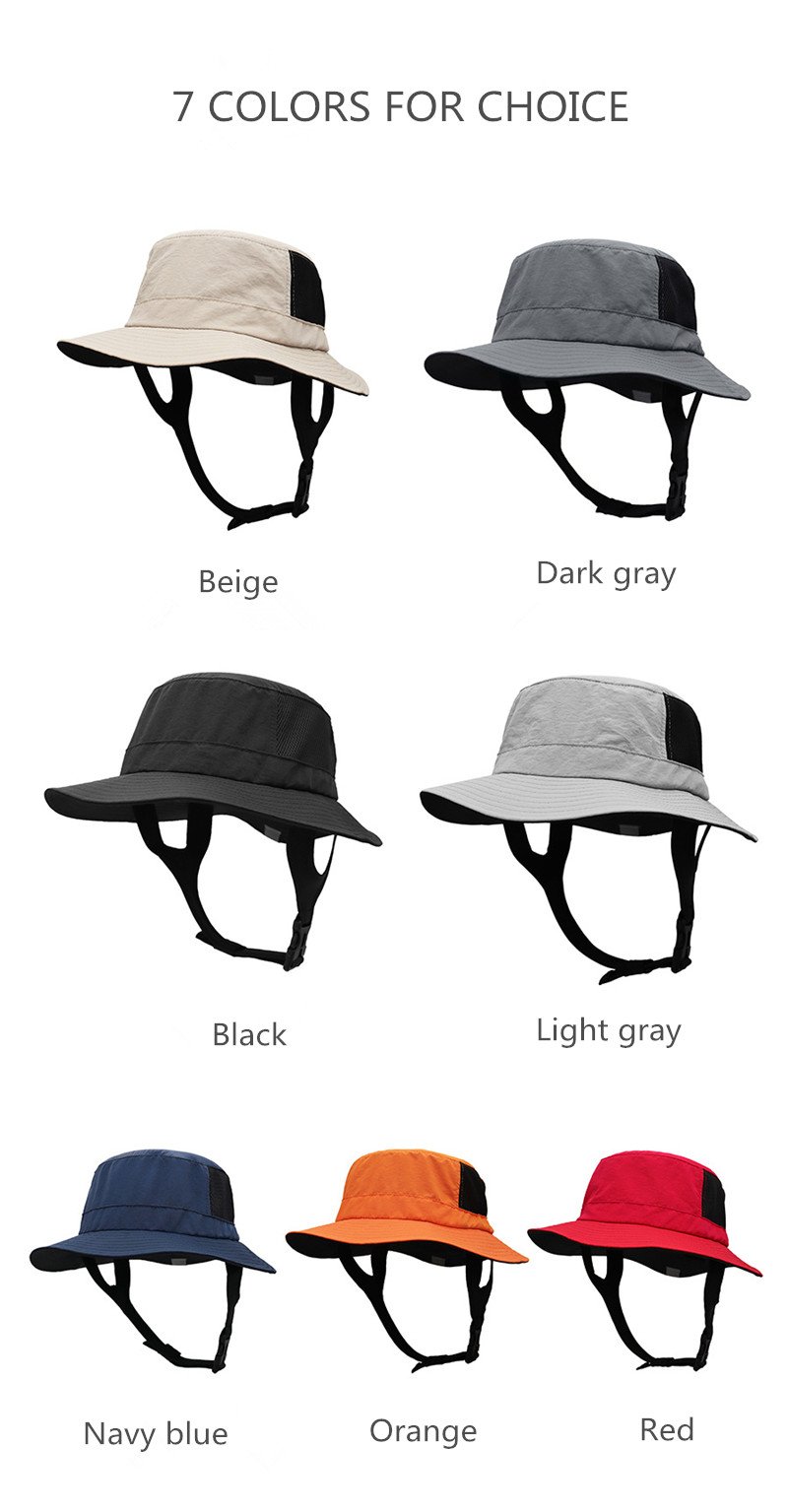 Choose from black, beige, navy blue, dark gray, light gray, red, or orange to match your style. With versatile color options, this surf bucket cap complements any beachwear or sports outfit.